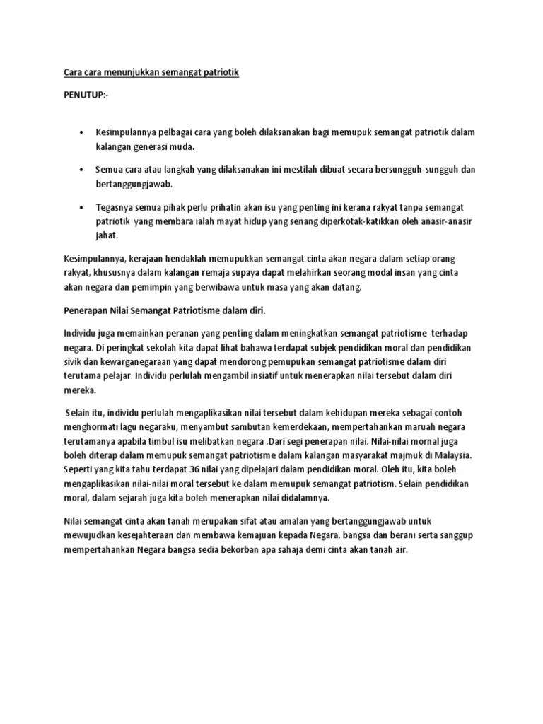 Karangan percubaan spm usaha usaha menunjukkan rasa cinta akan negara. Langkah memupuk semangat patriotik, contoh karangan spm cara memupuk semangat. Karangan bahagian a kepentingan menerapkan semangat cinta akan negara.